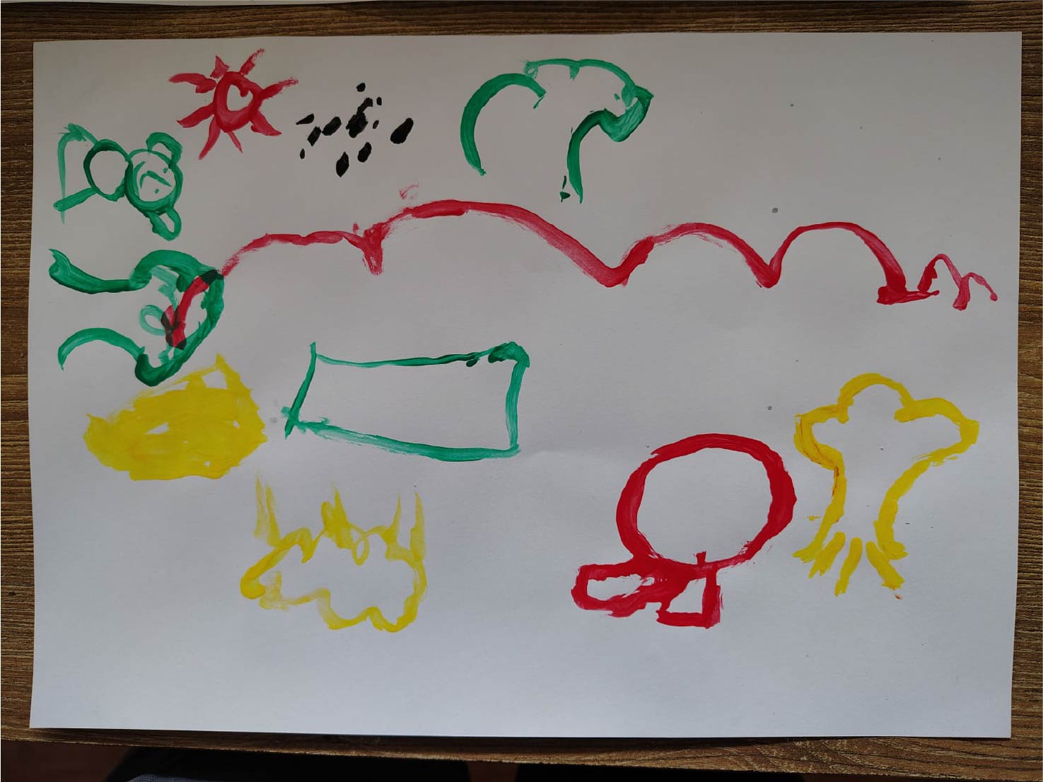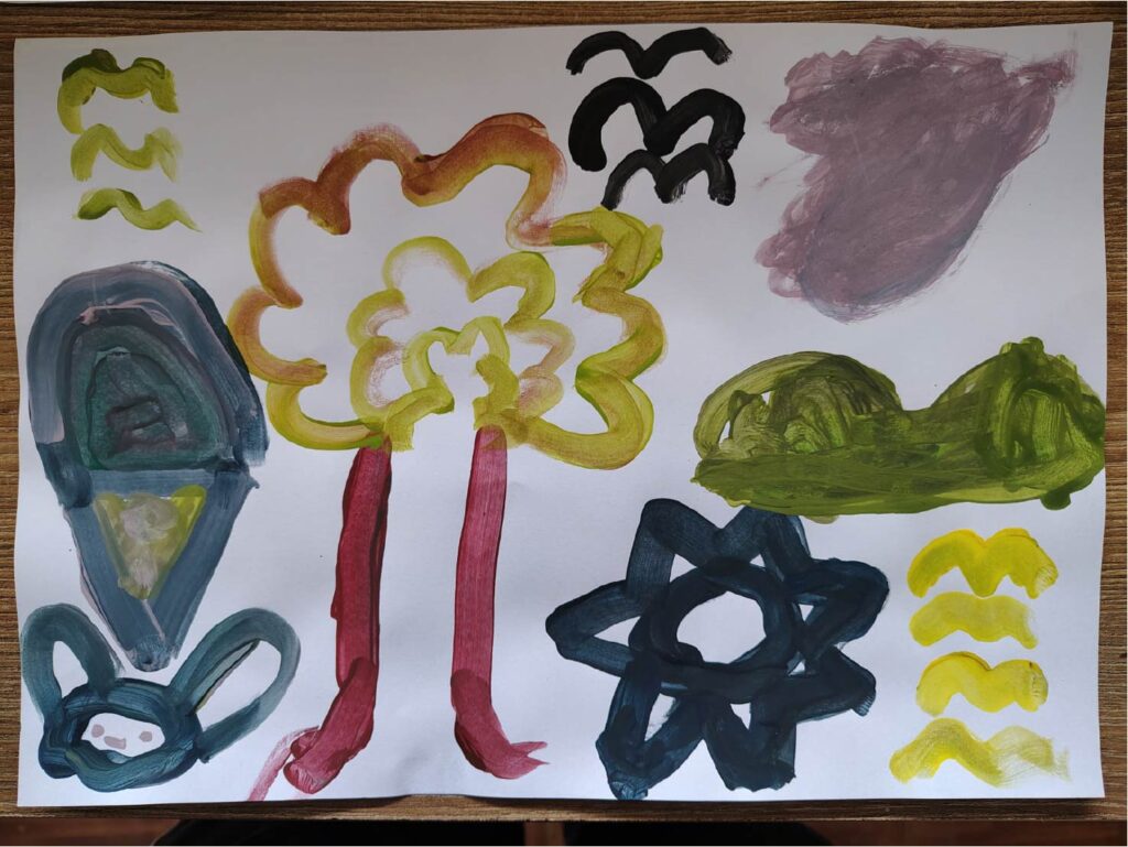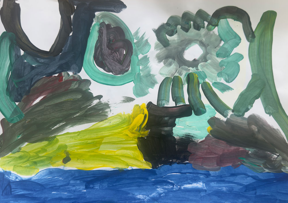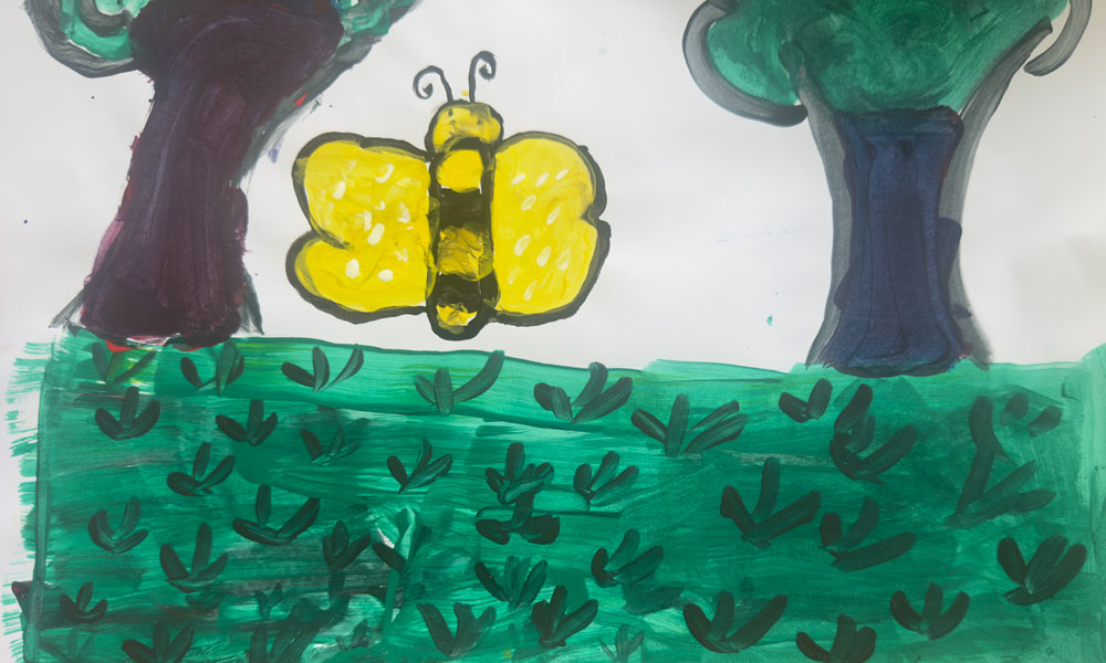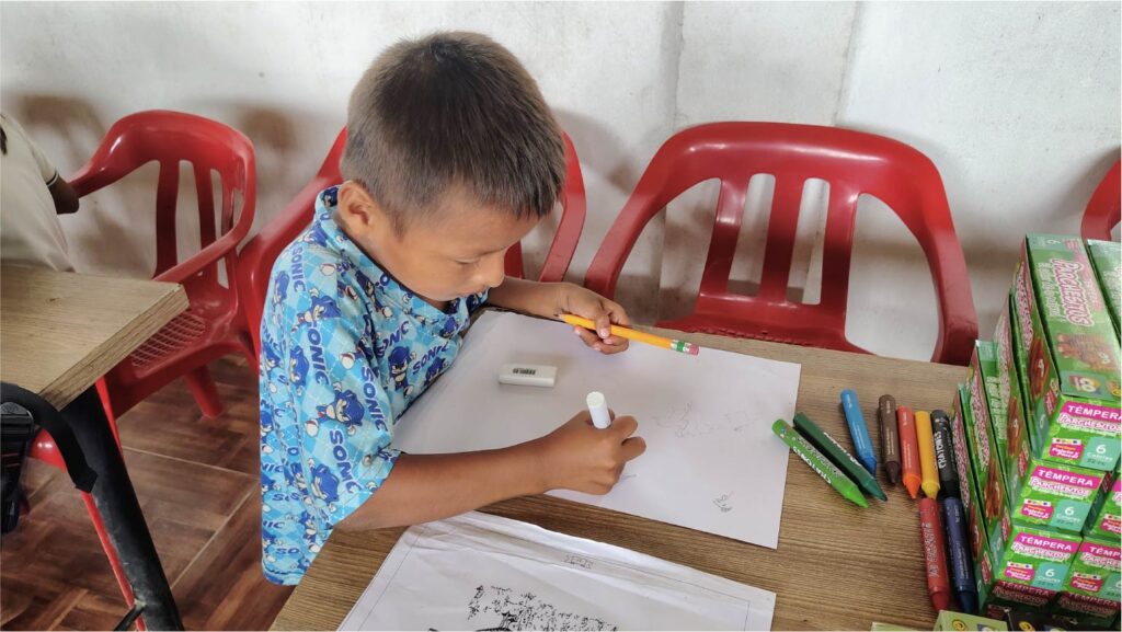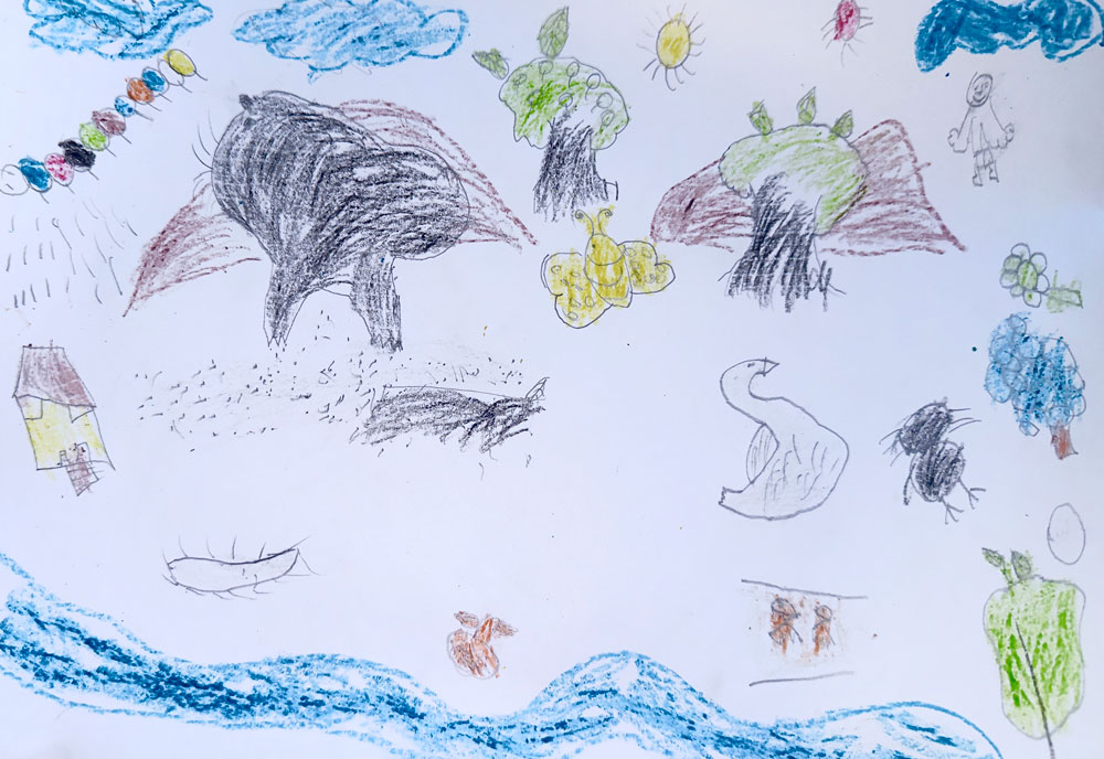 Fotografías de los dibujos y texturas creados por los niños y niñas durante los talleres artísticos. Imágenes que retratan el proceso en las aulas y el territorio, donde la palabra y el color se encuentran.