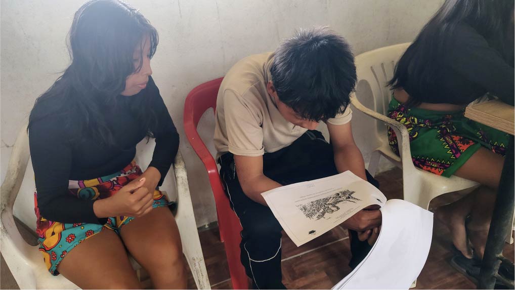 Los docentes del Semillero y los estudiantes de la Institución Educativa Indígena “La Unión” del Resguardo de Río Pichimá participaron activamente en su desarrollo: los niños y niñas de primaria complementaron las ilustraciones originales con texturas y personajes, mientras que los estudiantes de bachillerato prestaron sus voces para dar vida a los cuentos en Woun Meu y castellano.